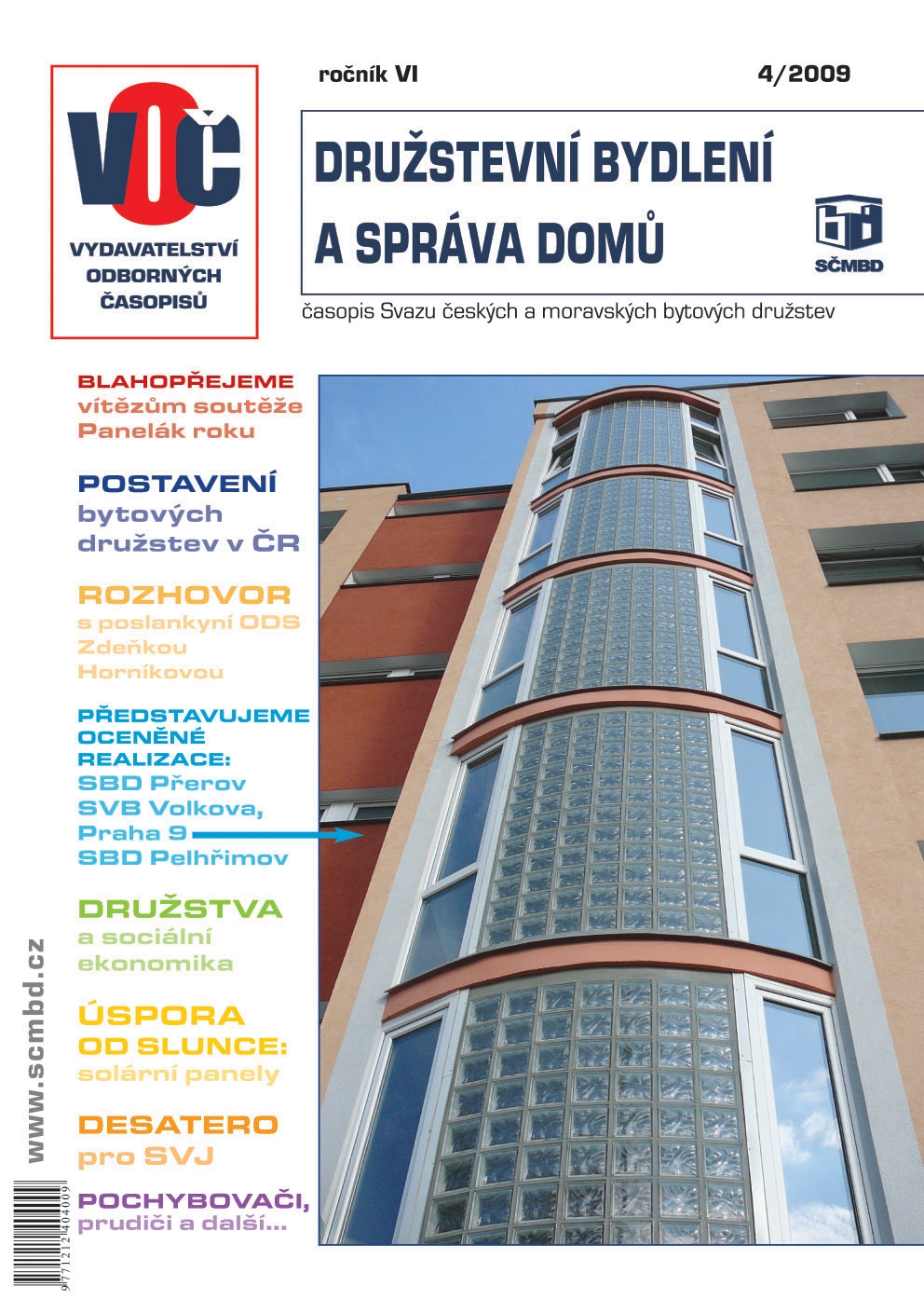 Právě v těchto dnech se mezi Vás dostává čtvrté číslo našeho časopisu Družstevní bydlení a správa domů. A co nového číslo 4/2009 přináší? Například: Rozhovor s poslankyní ODS Zdeňkou Horníkovou , článek Desatero pro SVJ, informaci o postavení bytových družstev v ČR a moho dalších užitečných informací.
